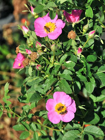 | Our roses develop into rosehips thanks to a few happy bees. |